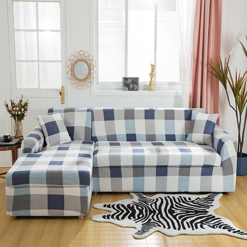 Blue Checkered-Full-wrapped Universal Stretch Sofa Cover