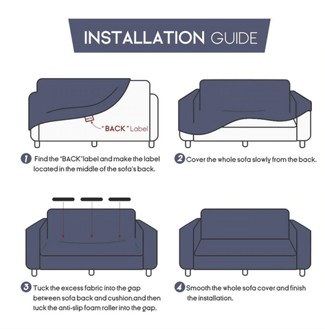 Stay in place: This sofa cover is applicable to any sofa in which there is a gap between the seats with a backrest and armrest. There are cloth strips which can be pushed down and under the sofa – as far as you can - to hold the cover in place.