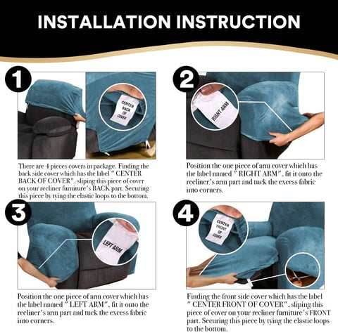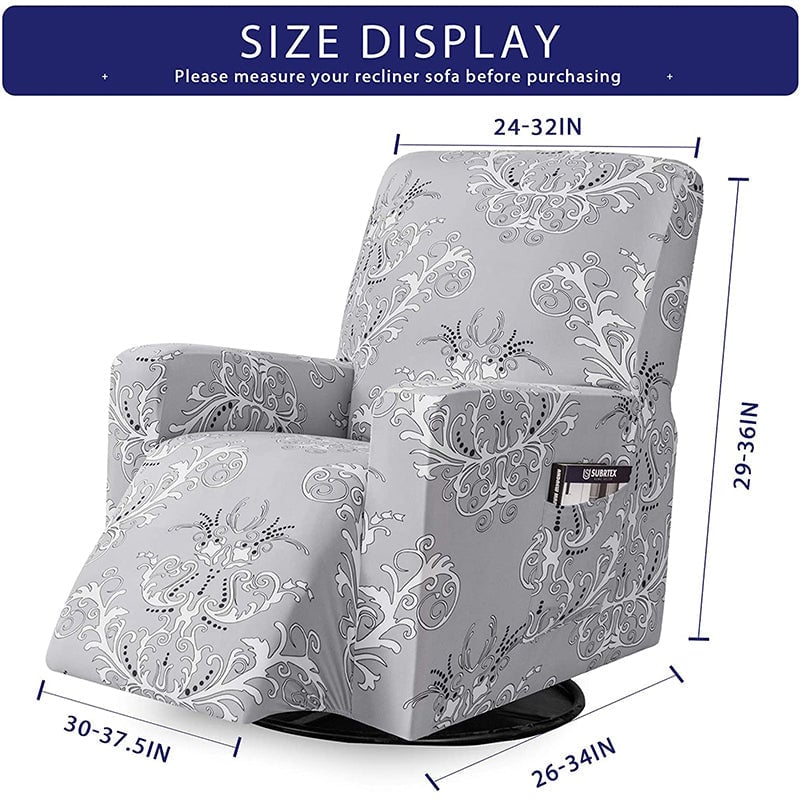 - FITS MOST FURNITURE:?Our slip covers are one-size-fits-most: Best fits recliners around 30-38 inches wide (outside arm to outside arm, straight across), 28-38 inches tall (unreclined).